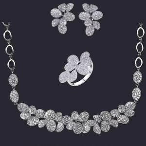 قلادة زهرة العروس بياقة من الزركون أقراط لحفلات الزفاف مجموعة مجوهرات أنيقة للنساء مجموعة مجوهرات زركونيا